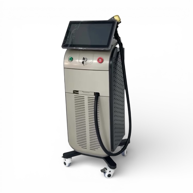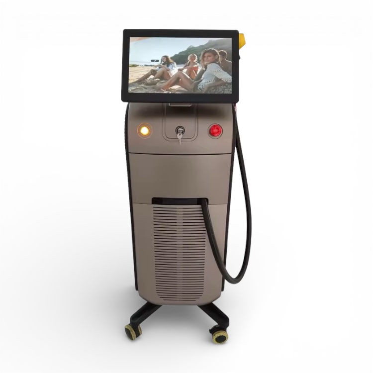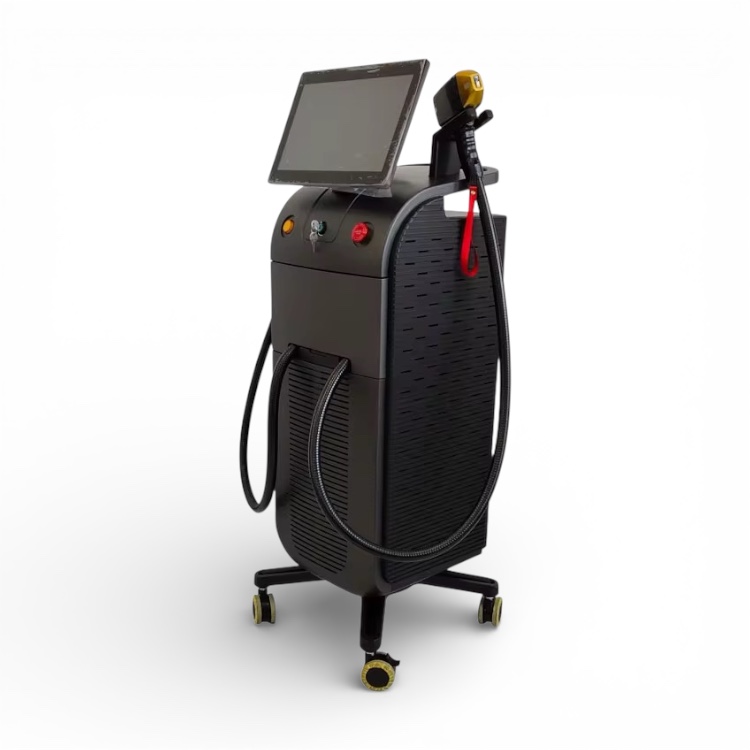 Ovaj vertikalni samostojeći diodni laserski uređaj za uklanjanje dlaka je uređaj koji integrira lasersku tehnologiju, elektroničku tehnologiju,te računalnu i medicinsku znanost. Lasersko uklanjanje dlaka je postupak u kojem se diodnim laserom koji proizvodi intenzivno pulsirajuću lasersku zraku točno određene valne duljine (755-808-1064 nm),za uklanjanje korijena neželjene dlačice, dok se energija lasera koristi u svrhu sprječavanja ponovnog rasta dlačica. Energija lasera prodire nekoliko milimetara u kožu da stigne do korijena dlačica,a u trenu kada dopre do melanina u dlaci, svjetlost se apsorbira i pretvora u toplinu,te uništava korjen dlake