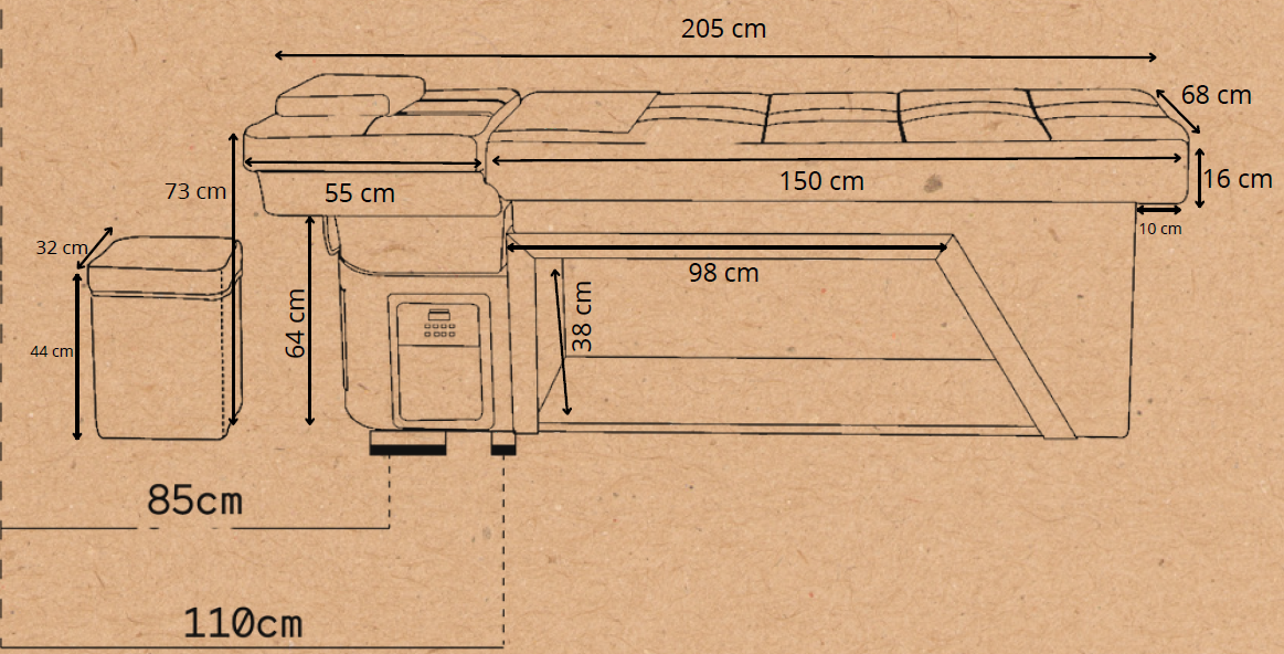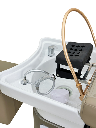 Uskoro,u bež boji.Head Spa Aika kombinira robusnu metalnu strukturu od nehrđajućeg čelika s jastukom i unutarnjom oblogom nsa oprugama kako bi ponudio potpuno prilagodljive tretmane kose vodom i parom.