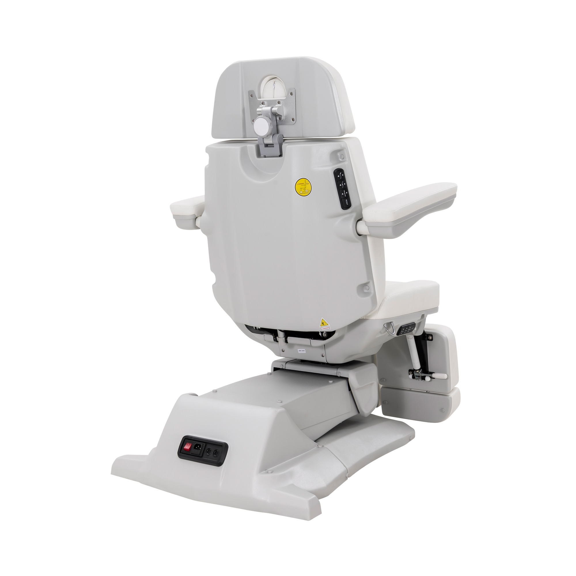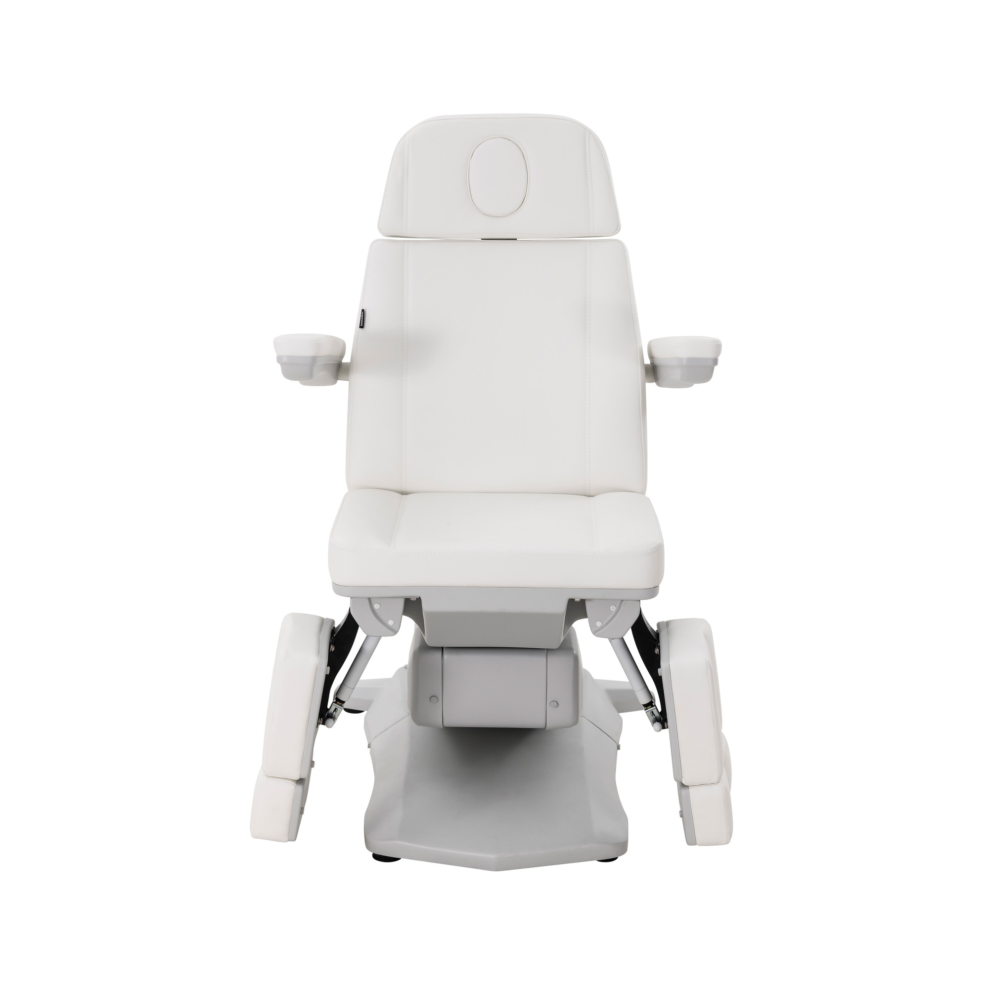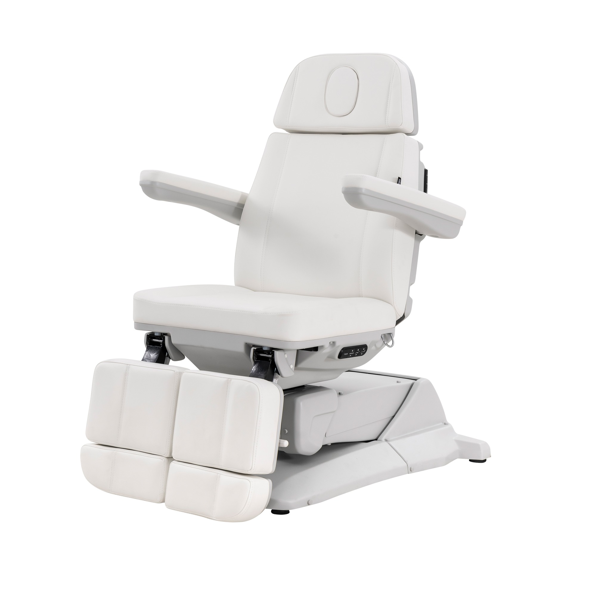 Ova pedikerska -podijatrijska stolica ističe se stabilnom konstrukcijom i tri jaka motora koji omogućuju elektroničko podešavanje visine, nagiba naslona i položaja sjedala.