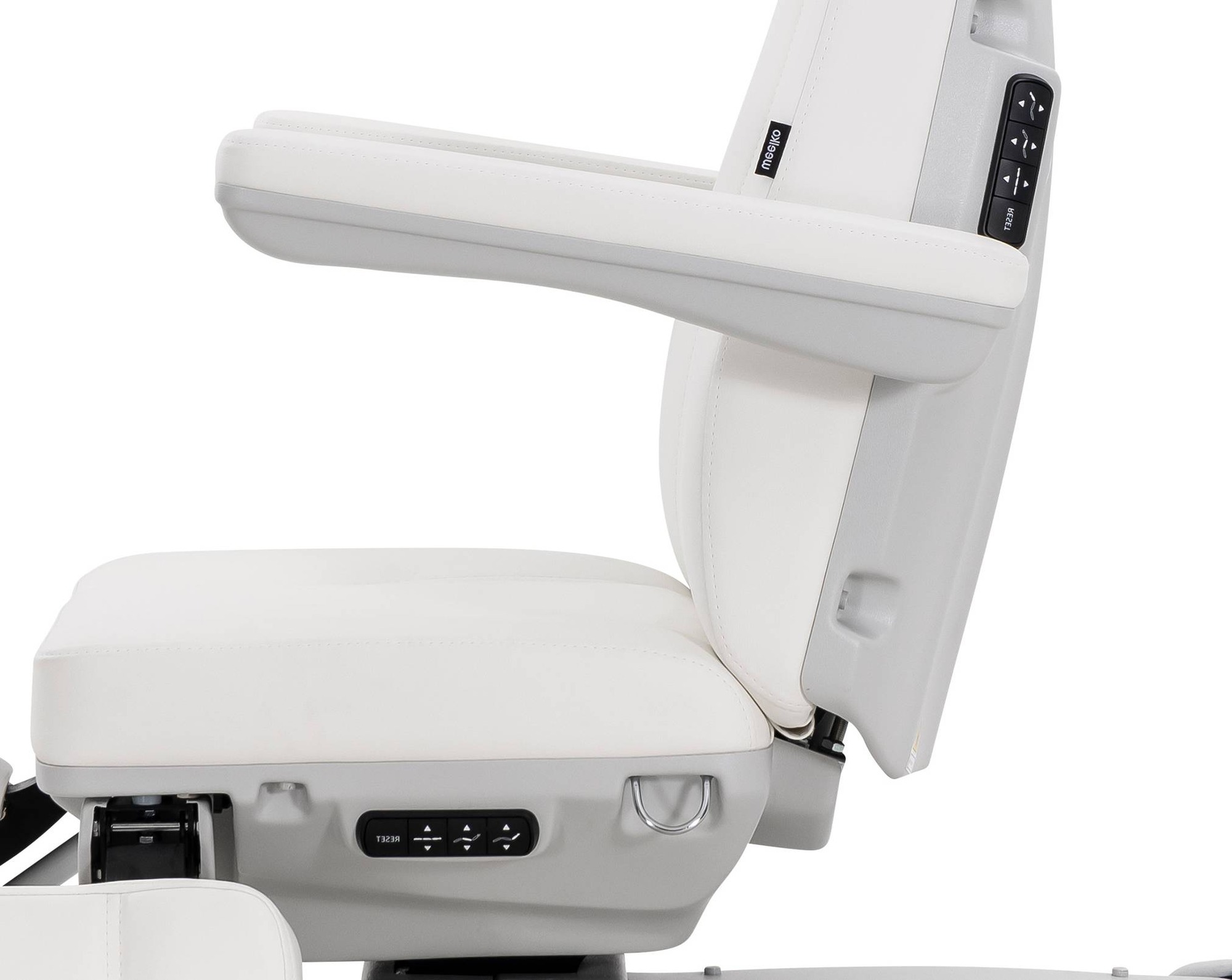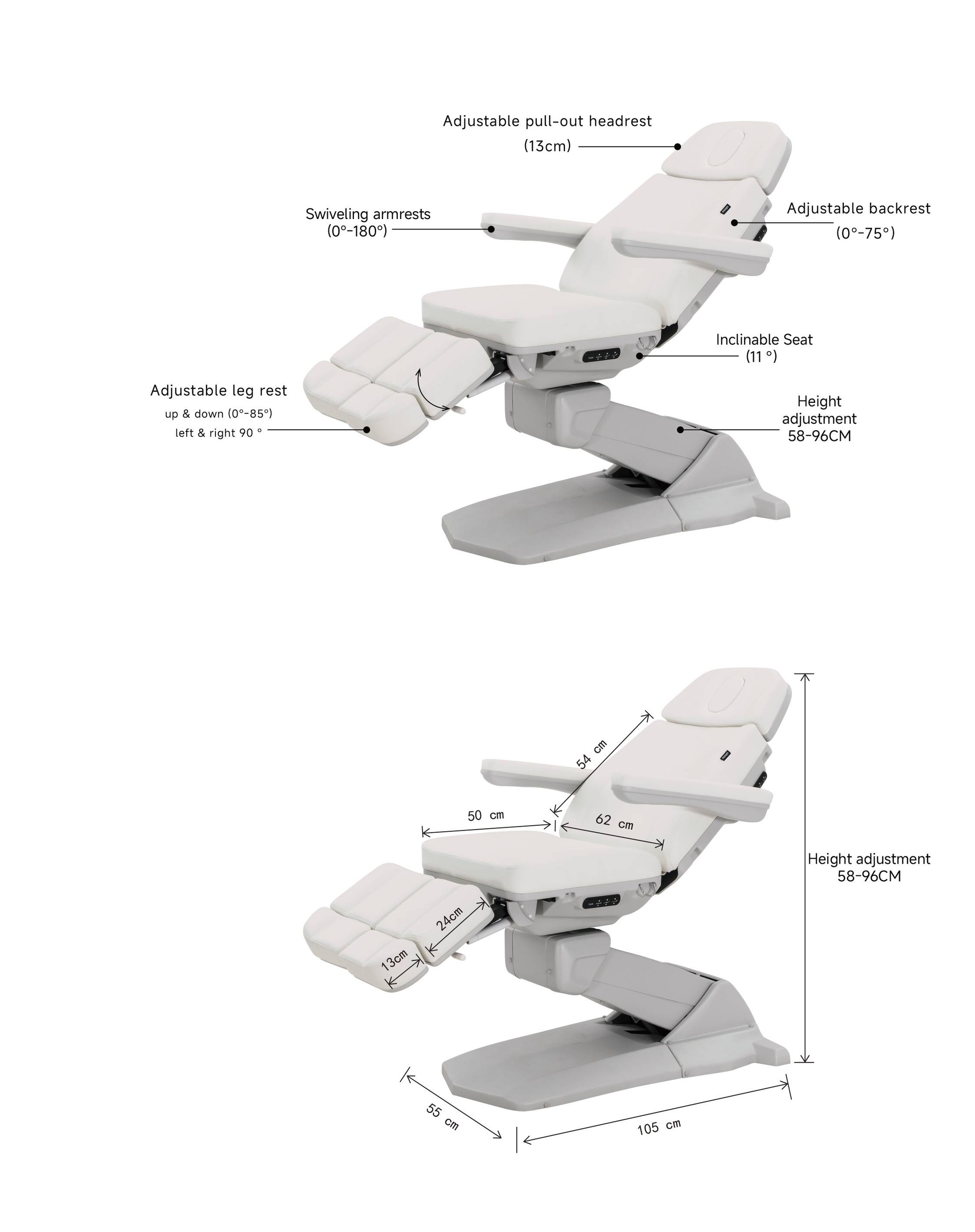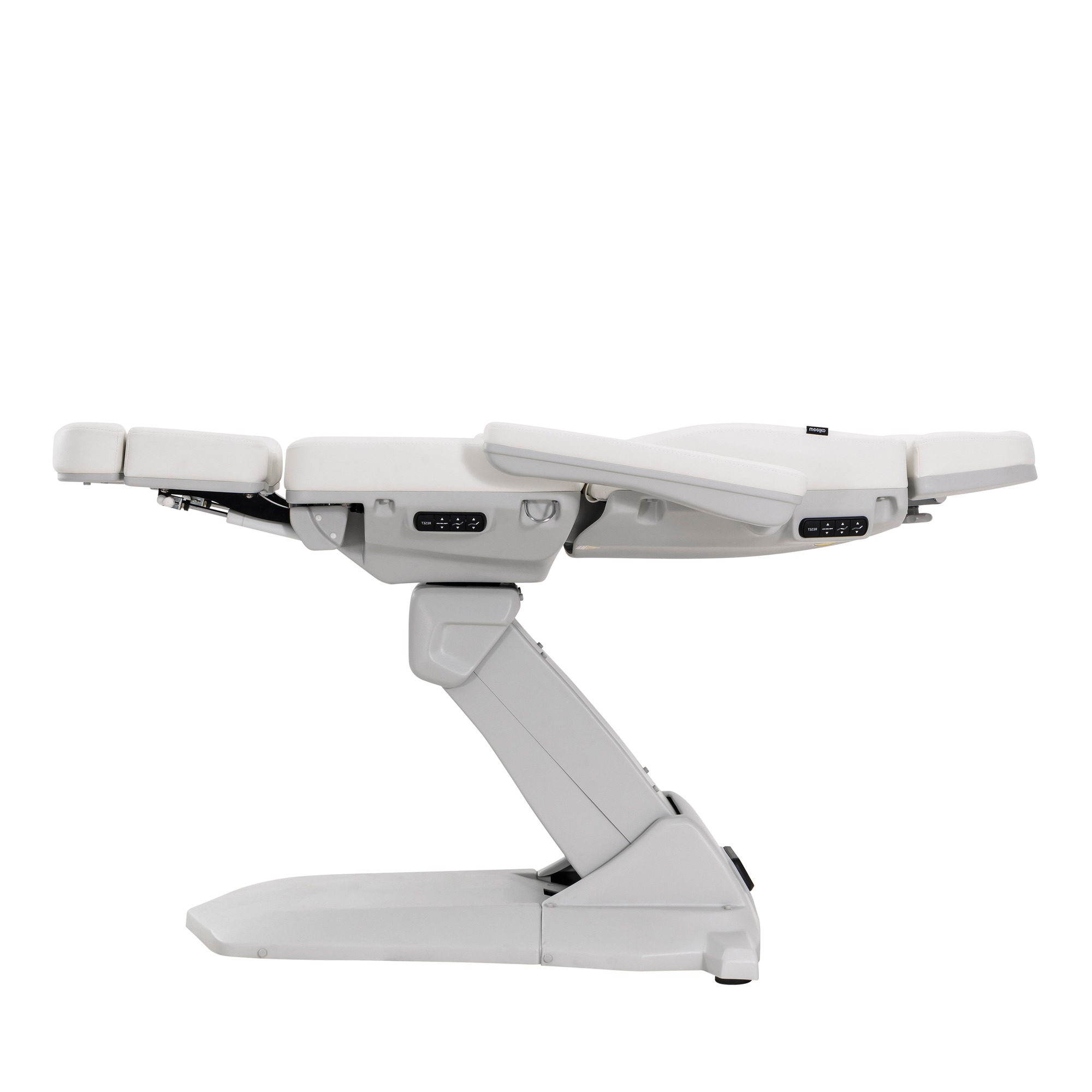 Ova pedikerska -podijatrijska stolica ističe se stabilnom konstrukcijom i tri jaka motora koji omogućuju elektroničko podešavanje visine, nagiba naslona i položaja sjedala.